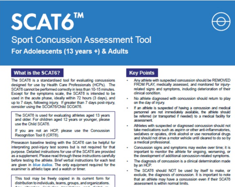The latest Sport Concussion Assessment Tool v6 has just been released by the British Journal of Sport Medicine.